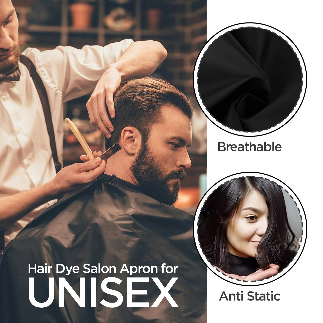 Long hours at the salon can be boring, but our bespoke haircutting and hair dye apron, with a transparent window at the center, lets you stay connected and entertained throughout the process. Designed for both comfort and practicality, these aprons are made from high-quality, water-resistant material to protect your clothes and mobile phone from hair, dye, and spills. The transparent, plastic sheet window allows you to use your phone without having to lift it from your lap. Perfect for salons, barbershops, or home use, this professional-grade apron ensures uninterrupted access to your device for messaging, streaming, or taking calls. With an adjustable elastic band and hook neck closure and full-coverage design, it offers a secure and comfortable fit for all users. It's unisex, free-size, and available in a variety of colors.